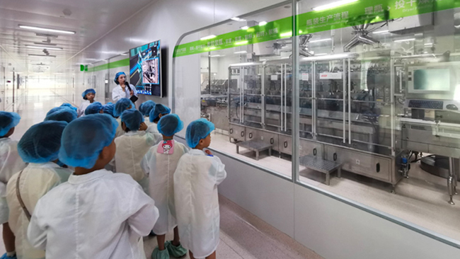 在营养探索馆中,穿过时空长廊,从森林到平原、从远古到现代、从当下到未来,我们对饮食和营养的需求也发生着巨变,在沉浸式观影的过程中,大家对人体健康有了更深入的了解。透明工厂、互动游戏、营养餐厅......来自天南海北的小朋友们在园区内尽情玩耍。在社交媒体平台上,园区被推荐为“夏天遛娃好去处”,有知识作伴、美食作陪,一家人可以在智能、洁净、互动、开放的园区共享假期快乐时光。当一座工厂从封闭走向开放,变成接待老人小孩、往来游客、同行伙伴的“游乐园”,品牌朋友圈更广了、企业承担的社会责任也更多了。