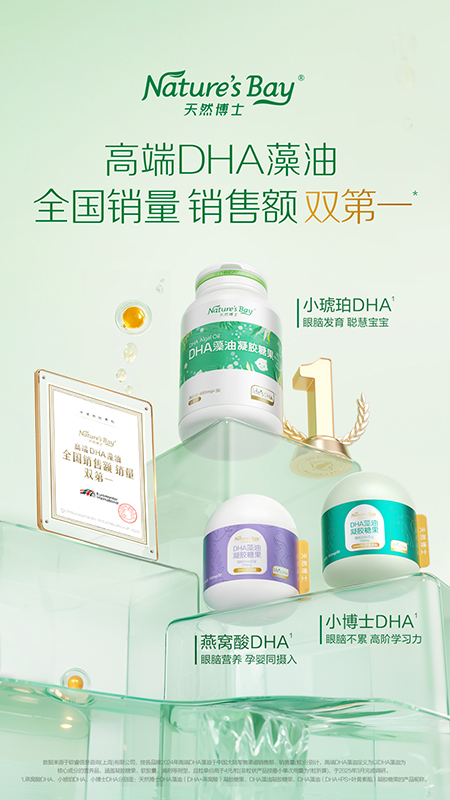 近日,专业婴童营养品牌天然博士再传喜讯!全球知名市场调研机构欧睿数据发布声明称,天然博士凭借卓越的市场表现,荣获高端DHA藻油全国销售额、销量双第一1。从 “高端DHA藻油凝胶糖果” 到 “高端DHA藻油” 的多剂型升级跨越,不仅印证了天然博士在“高端DHA藻油”赛道的优势,也凸显了大众对天然博士品牌力与产品力的高度认可。