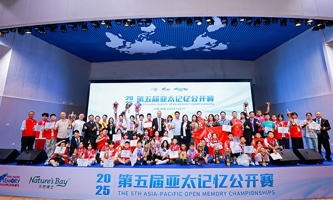 8月16日-17日,2025年第五届亚太记忆公开赛在珠海举办,吸引了来自亚太多个国家和地区的上百位参赛选手同台竞技。今年,由王茜雅、倪晨轩、渠安谊、刘泳麟、吴若旗、赵子萱组成的天然博士战队首次亮相亚太记忆公开赛,战队凭借出色表现在激烈的竞争中脱颖而出。其中,战队成员王茜雅、倪晨轩、刘泳麟包揽了亚太记忆公开赛全场总冠亚季军!