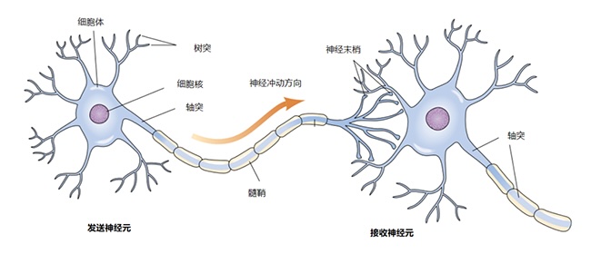 图:神经冲动沿轴突向下一传递至下一个神经元