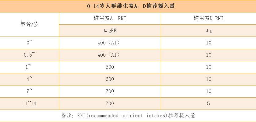 对于维生素AD,大家都知道其重要性了,那么对于到底应该补充多少是否有了解了吗?据《中国居民膳食营养素参考摄入量(2013版)》分别对维生素A和维生素D的参考摄入量: