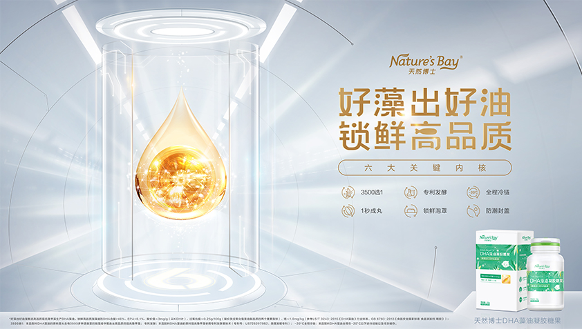 天然博士以“六大关键内核”打造高品质DHA藻油,推出全新DHA藻油推广口号“好藻出好油,锁鲜高品质”;从原料增选到生产、运输、包装,通过六大关键内核:3500选1、专利发酵、全程冷链、1秒成丸、锁鲜泡罩、防潮封盖为消费者提供高品质藻油。