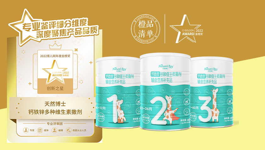 实力认证!天然博士钙铁锌多维斩获2022年度育儿网金橙奖