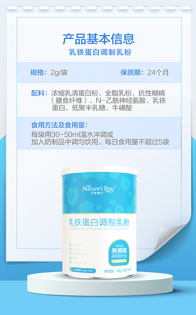每100g含乳铁蛋白100mg,燕窝酸4000mg