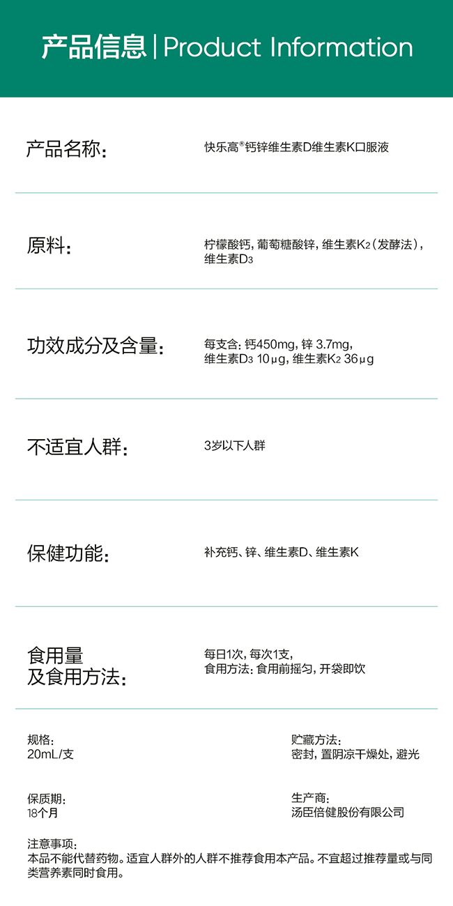 每袋添加水解蛋黄粉50mg 酪蛋白磷酸肽70mg/袋